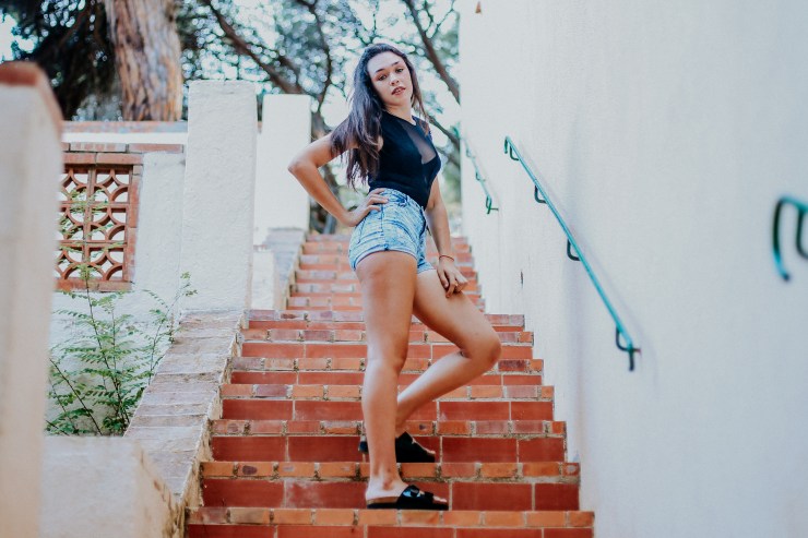 Como a ella no le importó seleccionar un lugar donde hacerse la sesión, le propuse de ir al «Parc Dalmau», el parque de toda la vida de Calella, en el que sus subidas y bajada de escaleras y arboles por todas partes me dio bastante juego a la hora de hacer las fotos… Y qué fotos mas guapas hicimos!!!