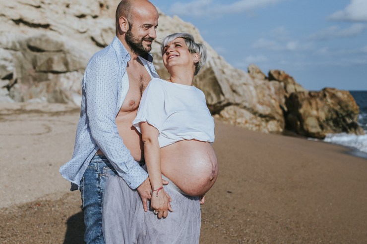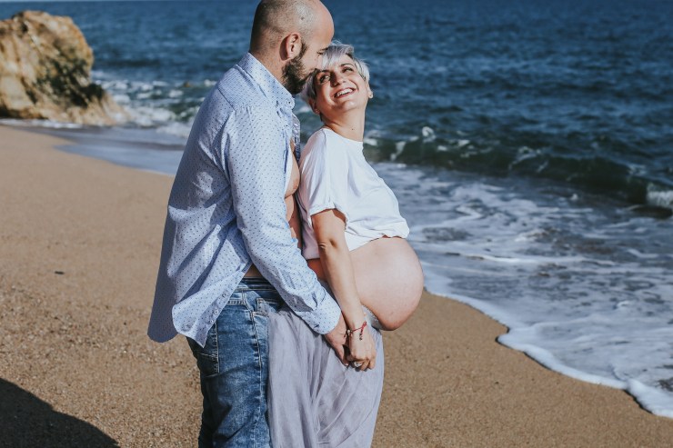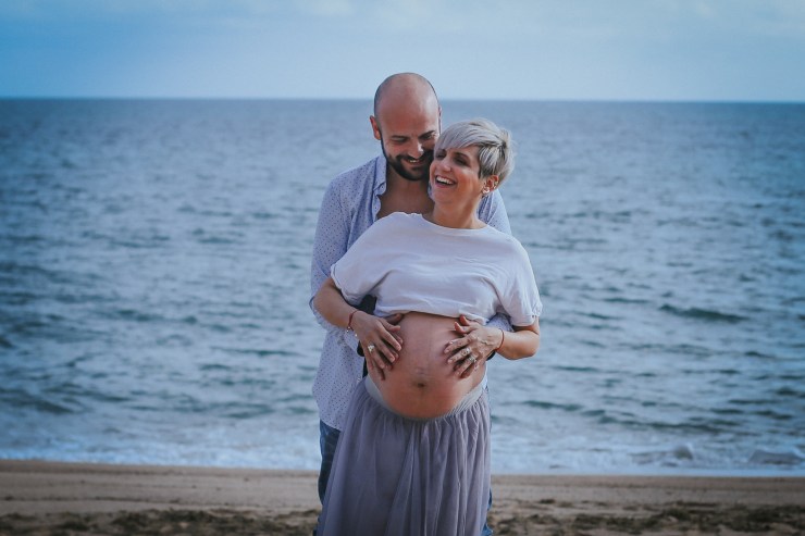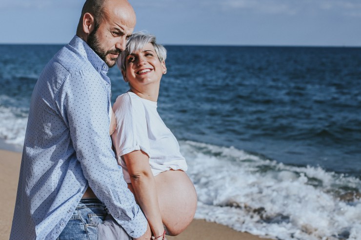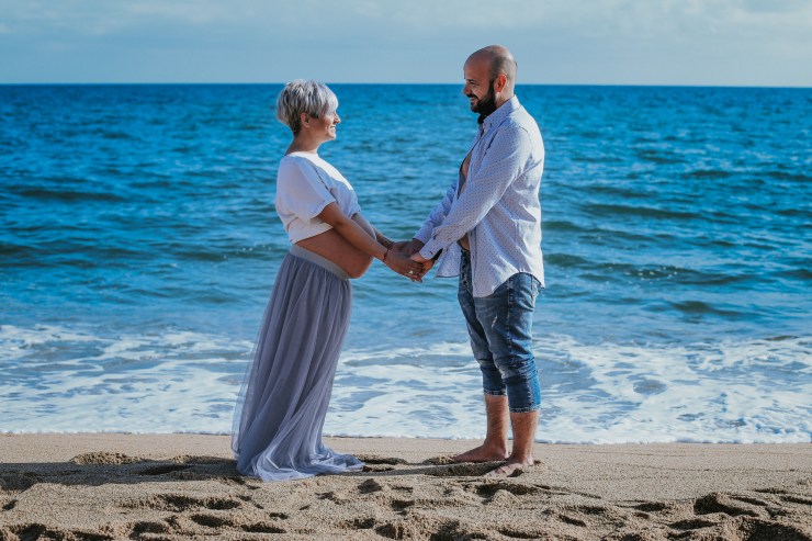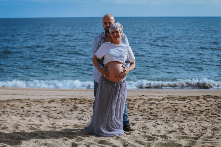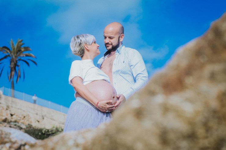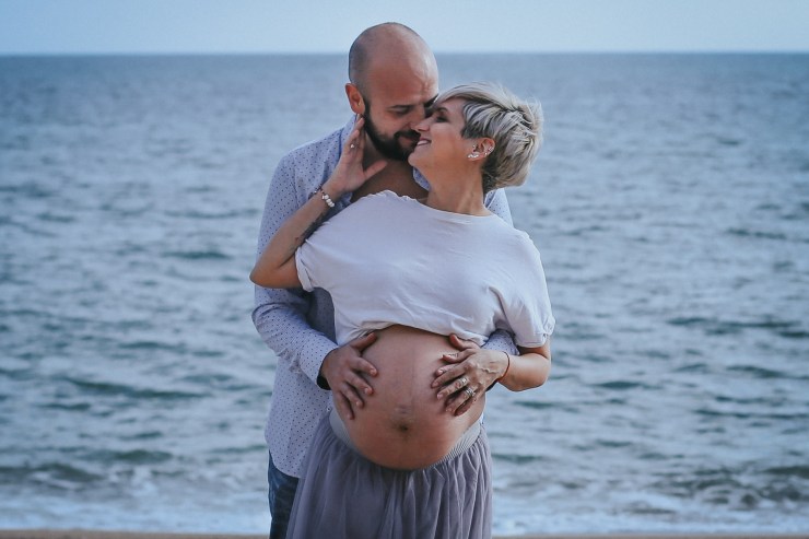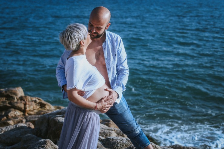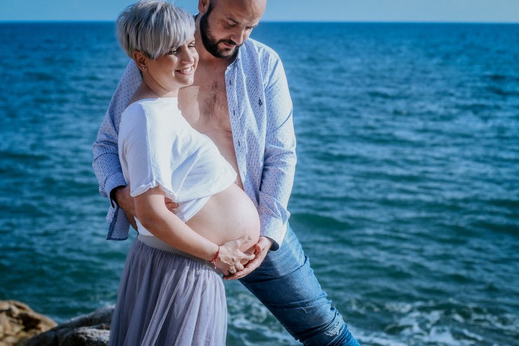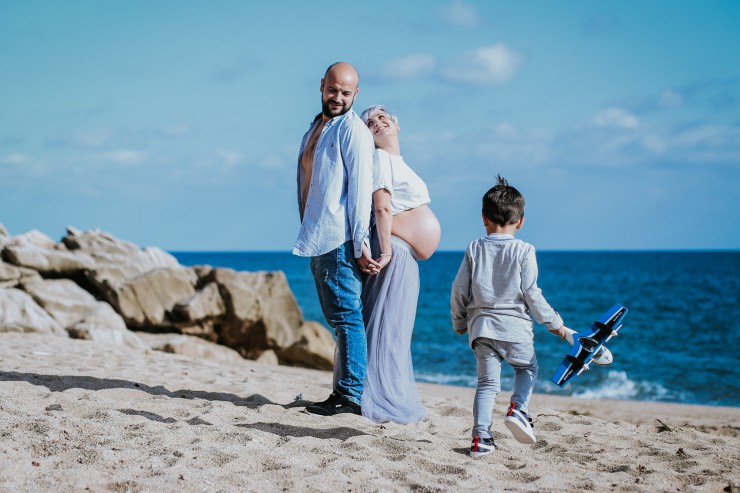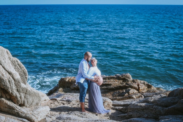 La sesión la enfocamos en dos partes debido al tiempo justo que teníamos. La primera parte la realizamos en la playa de Rocapins, preciosa cala de Calella. Ellos recién salían de una ecografía y quedamos allí mismo.