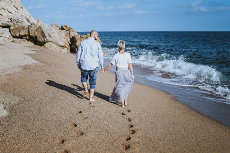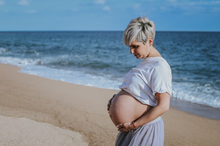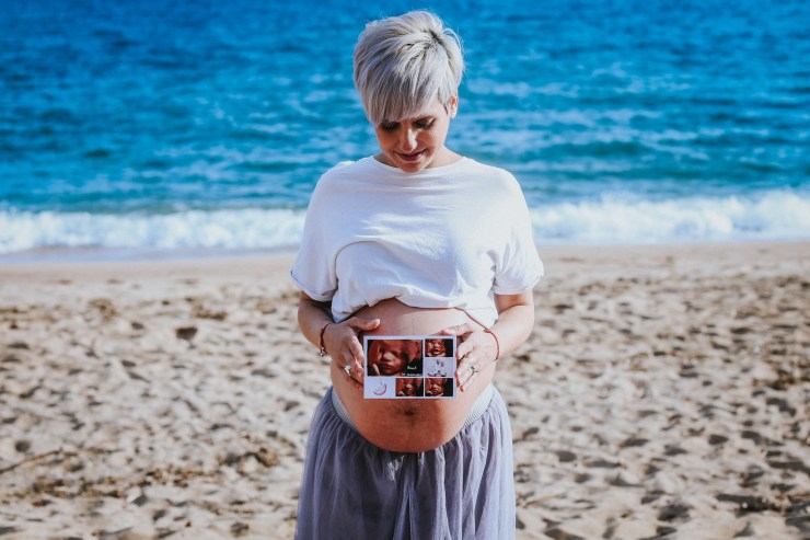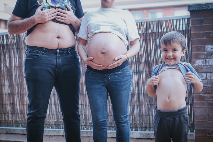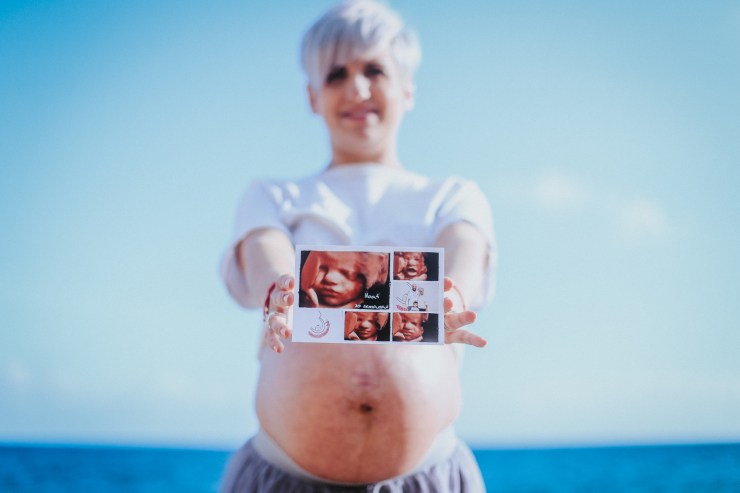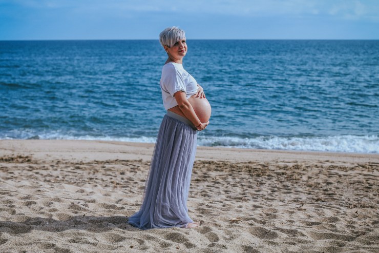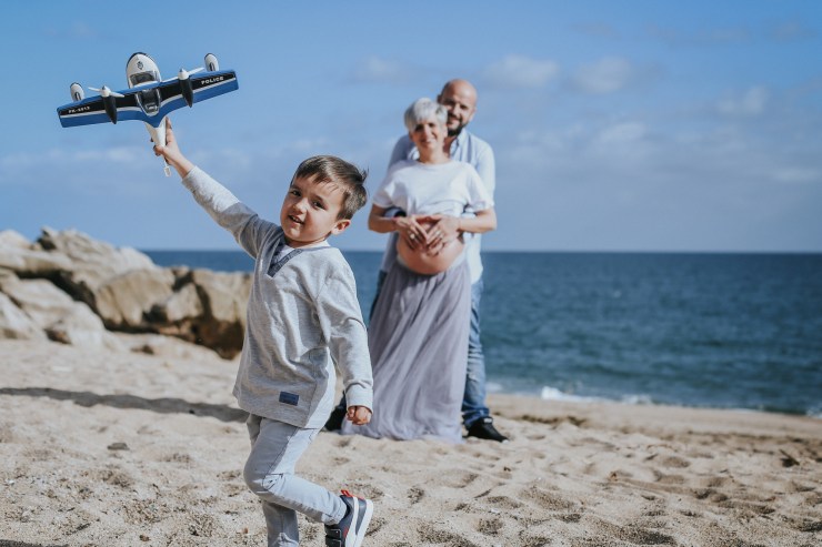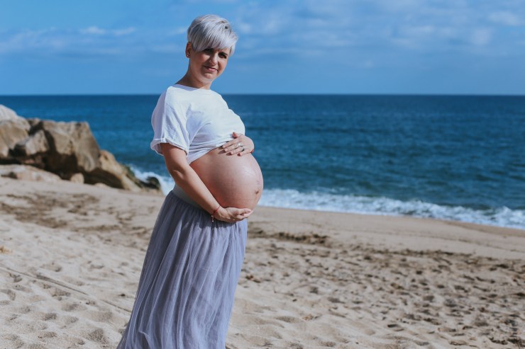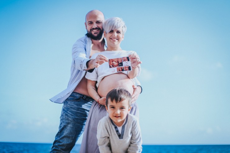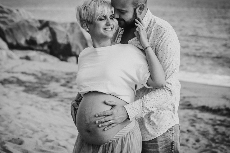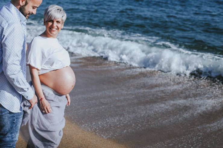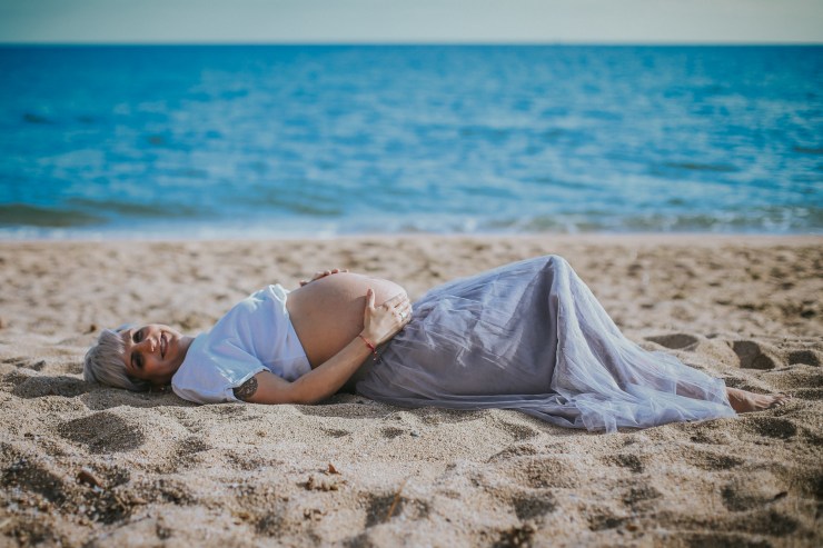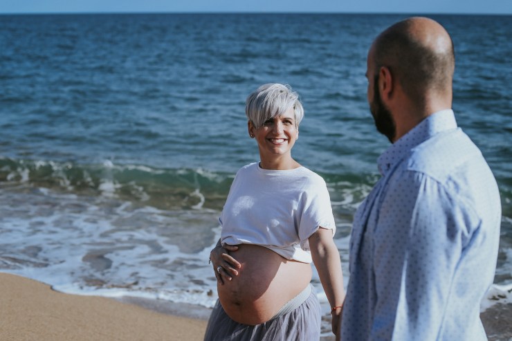 La sesión la enfocamos en dos partes debido al tiempo justo que teníamos. La primera parte la realizamos en la playa de Rocapins, preciosa cala de Calella. Ellos recién salían de una ecografía y quedamos allí mismo.